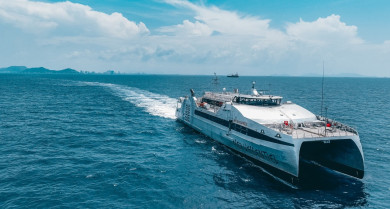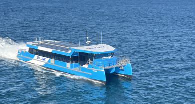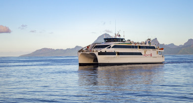 A 49m high-speed, 600 pax ferry for SNC Aremiti, powered by quad HT810s with MECS controls. This vessel sails between Papeete-Moorea route in French Polynesia with a top speed of 36 knots.